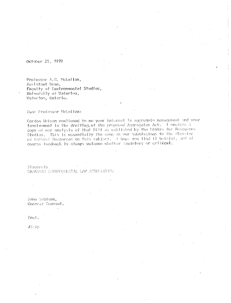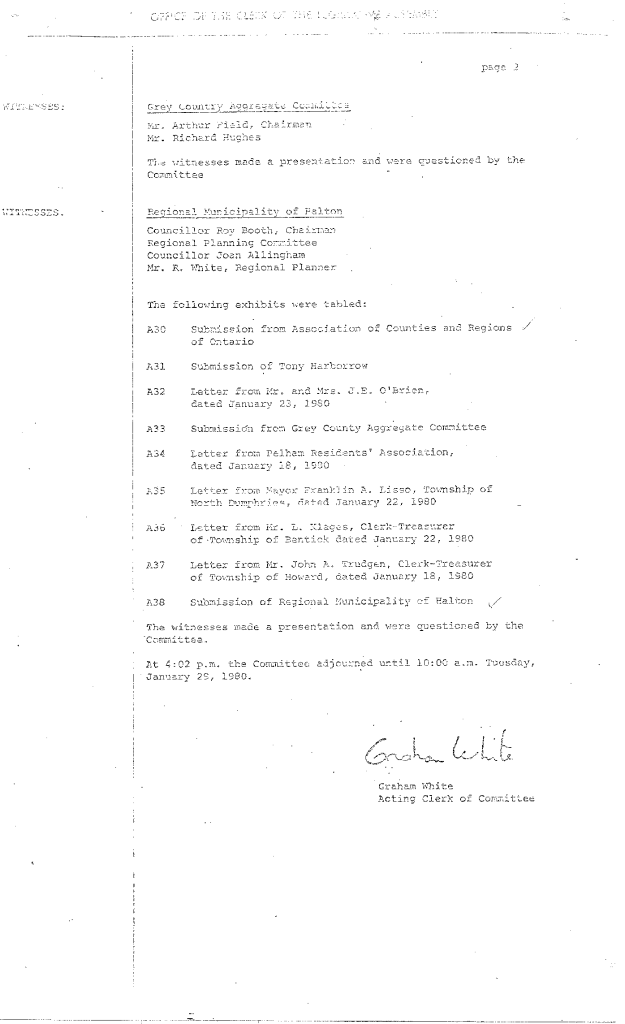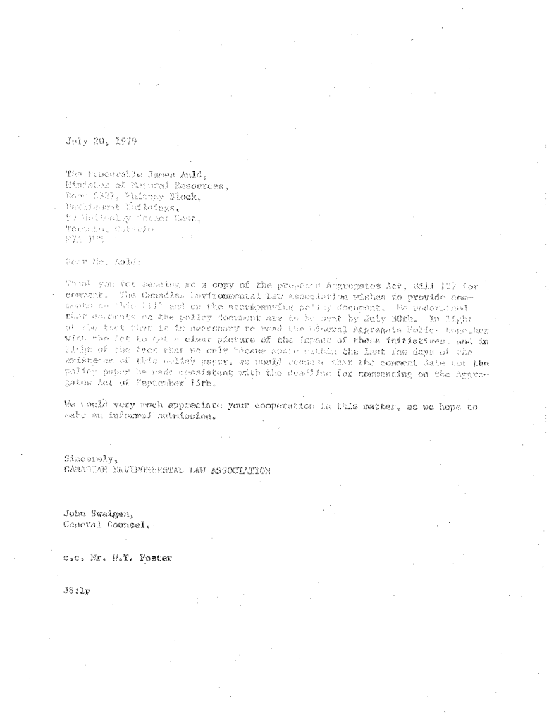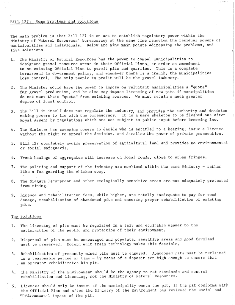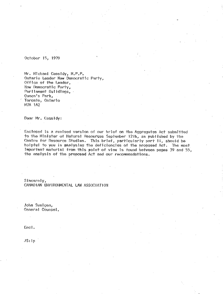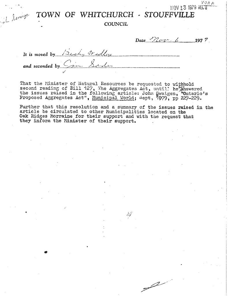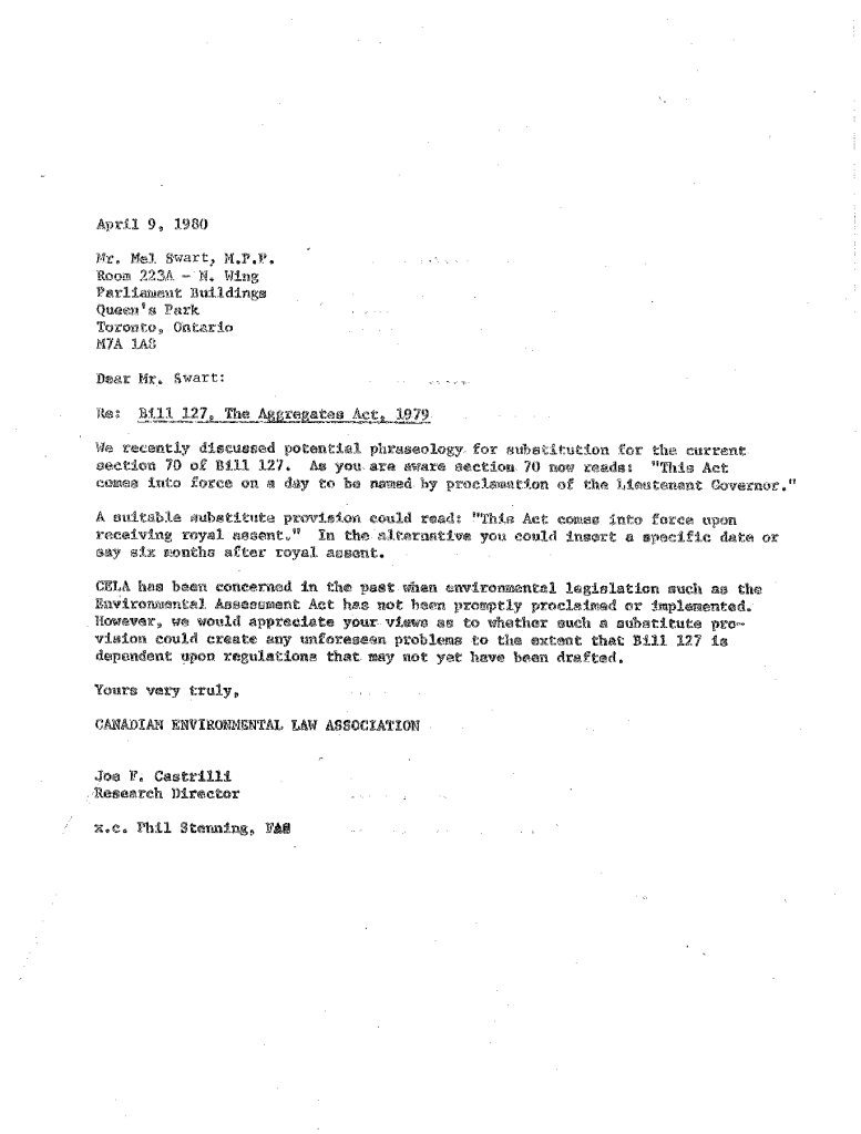 Selected correspondences from clerk of resource development standing committee – Bill 127