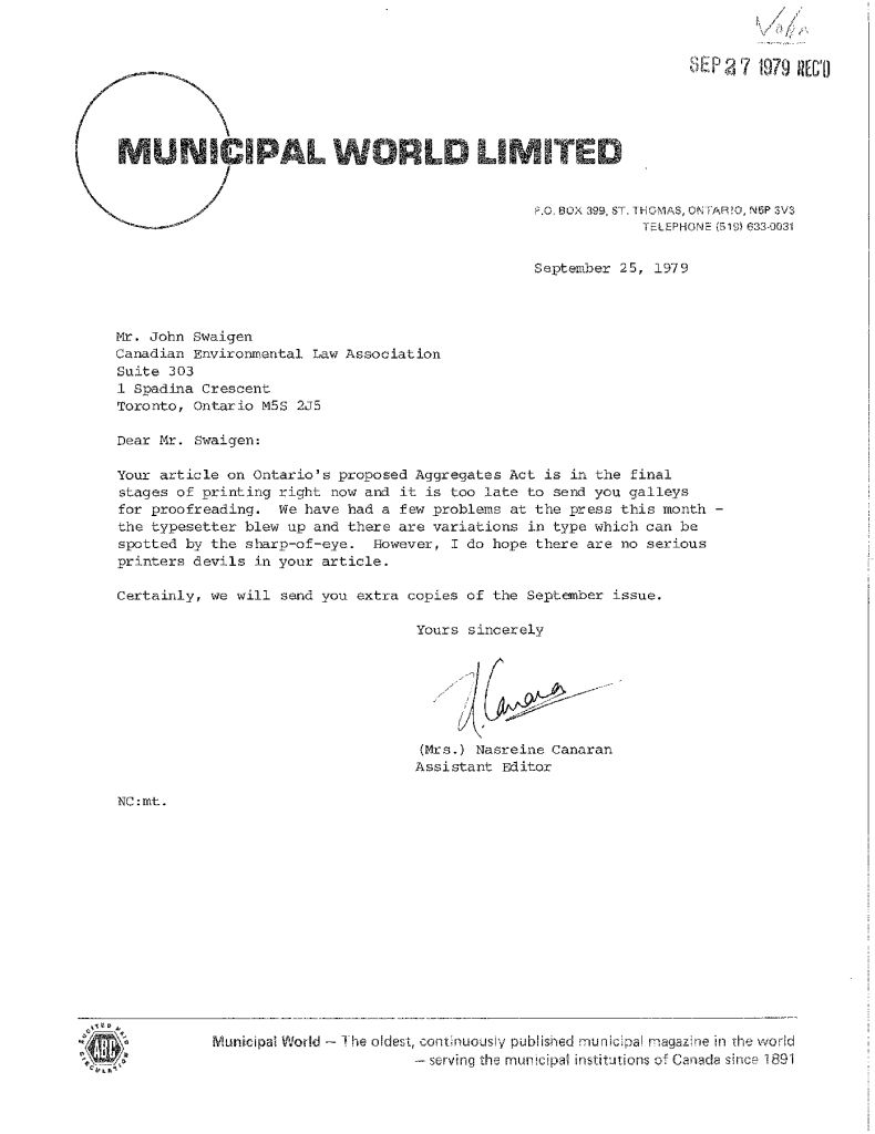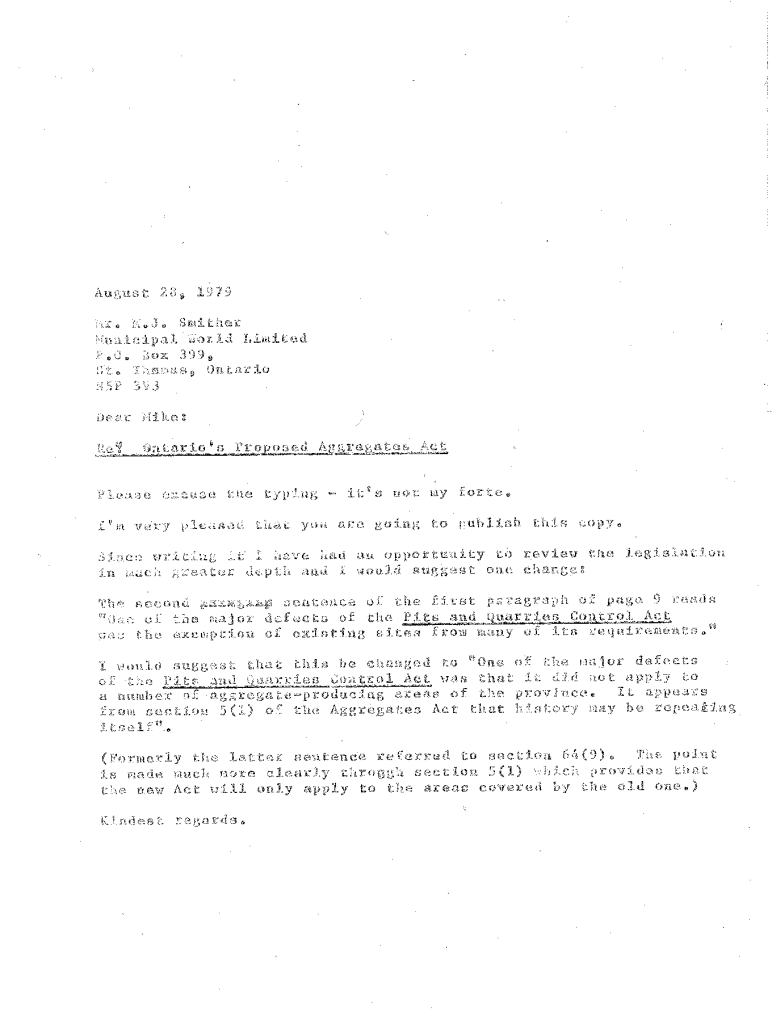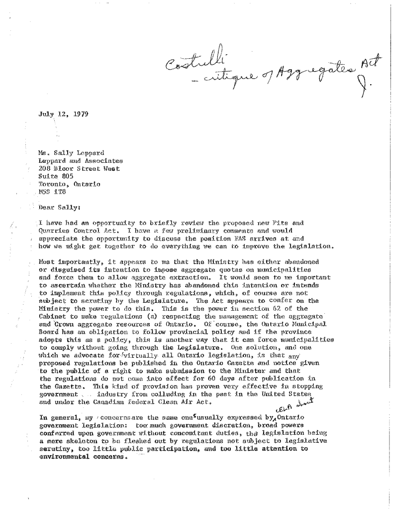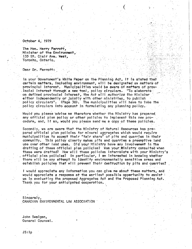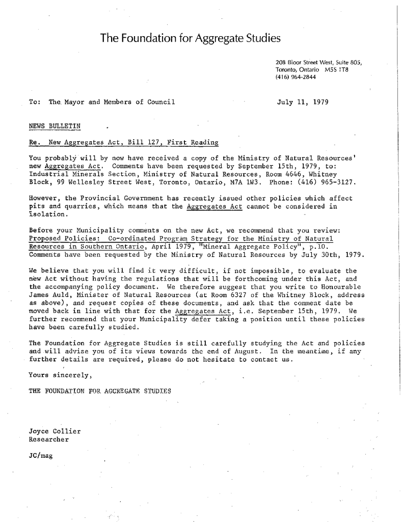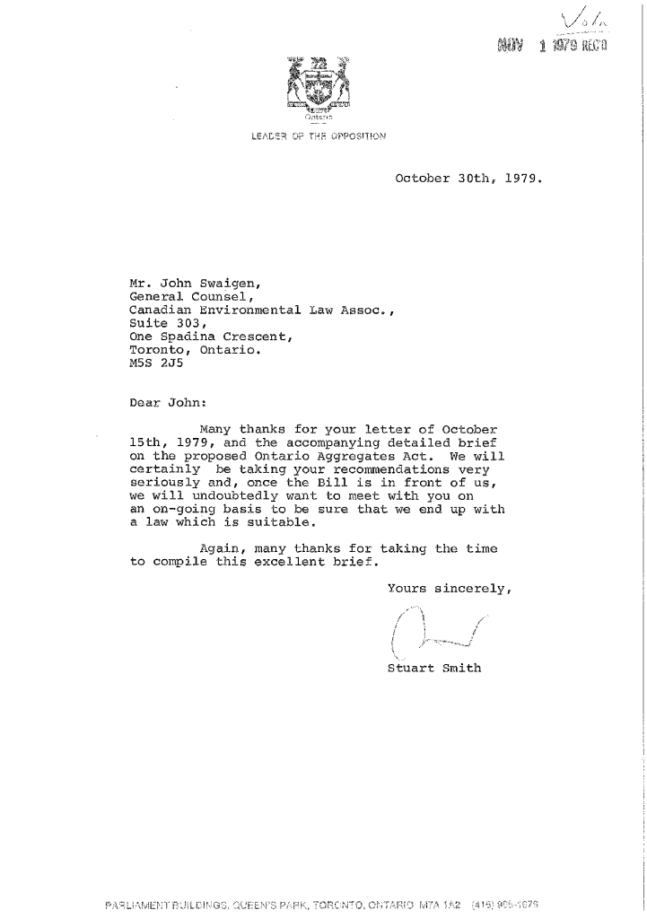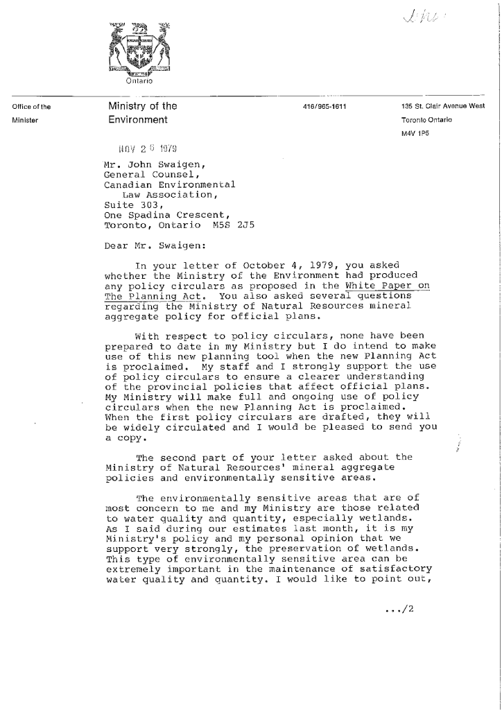 Selected correspondences from clerk of resource development standing committee – Bill 127