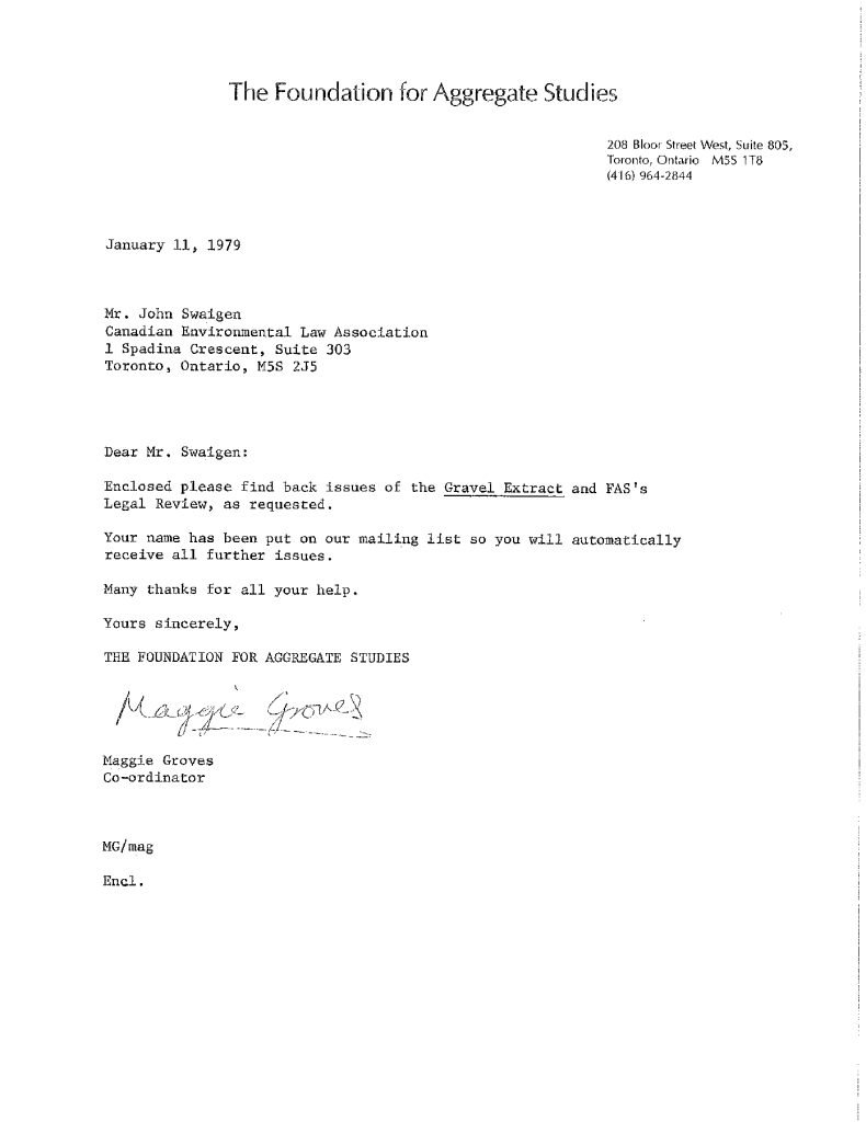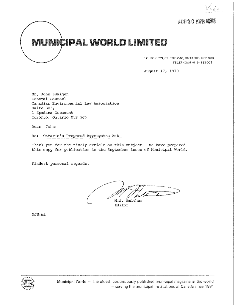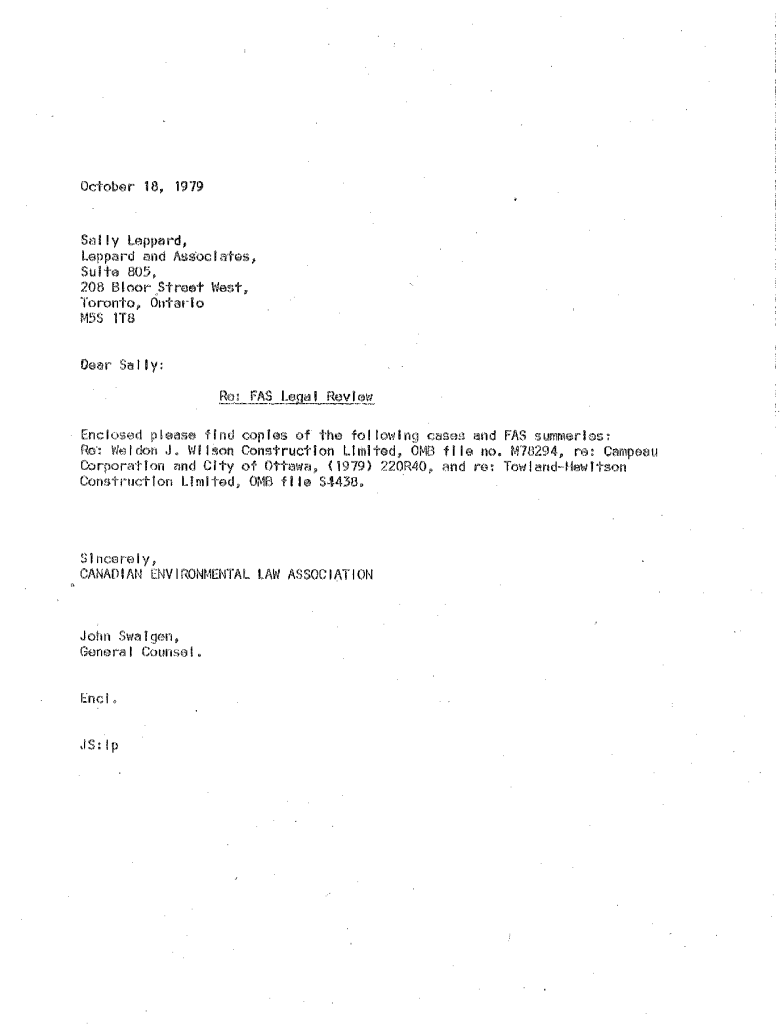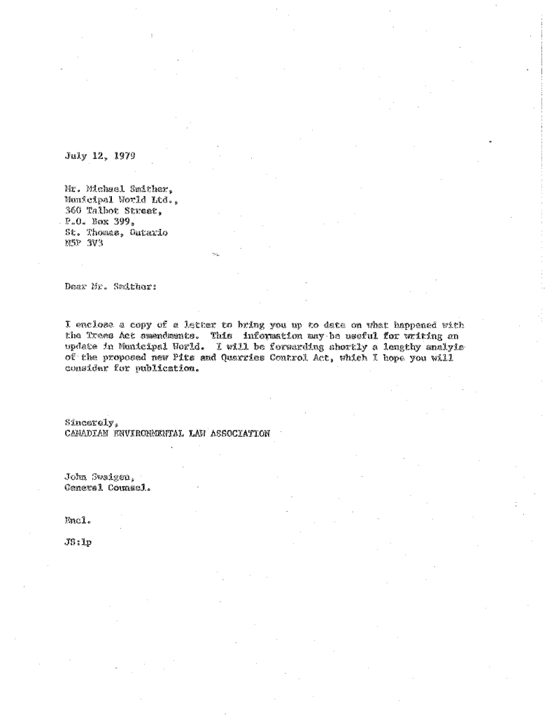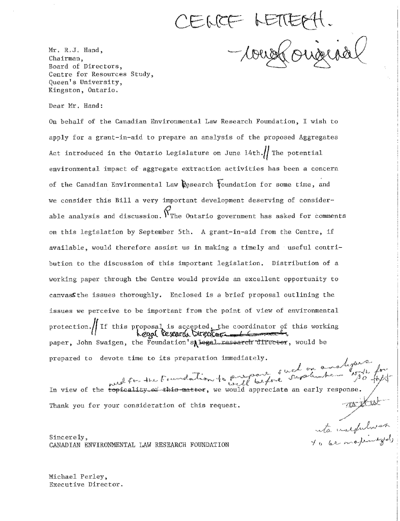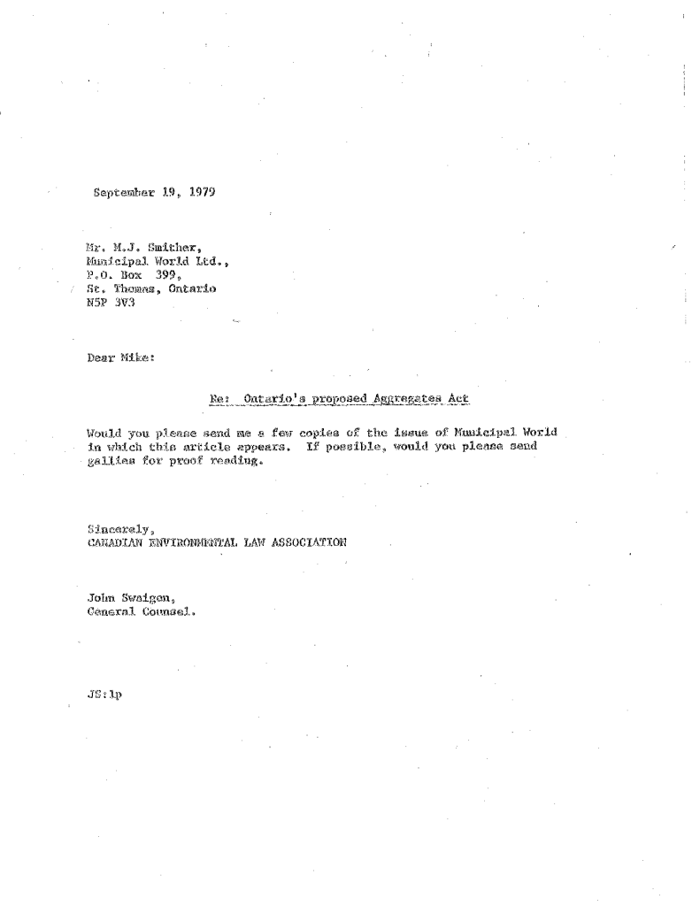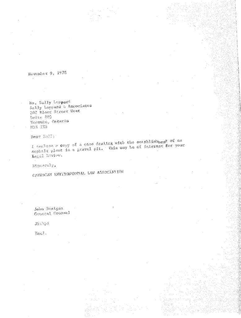 Selected correspondences from clerk of resource development standing committee – Bill 127