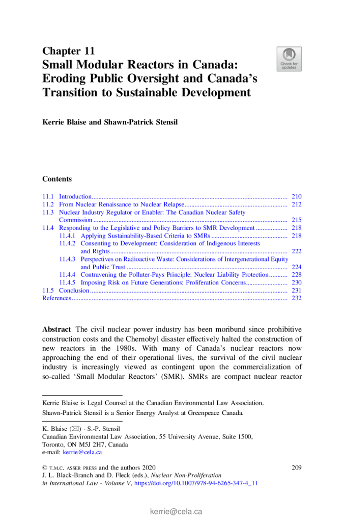 Small Modular Reactors in Canada: Eroding Public Oversight in Canada’s Transition to Sustainable Development