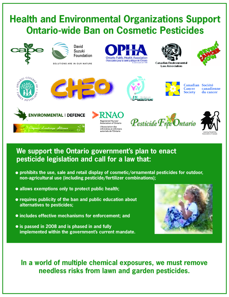 Statement: Health and Environmental Organizations Support Ontario-wide Ban on Cosmetic Pesticides