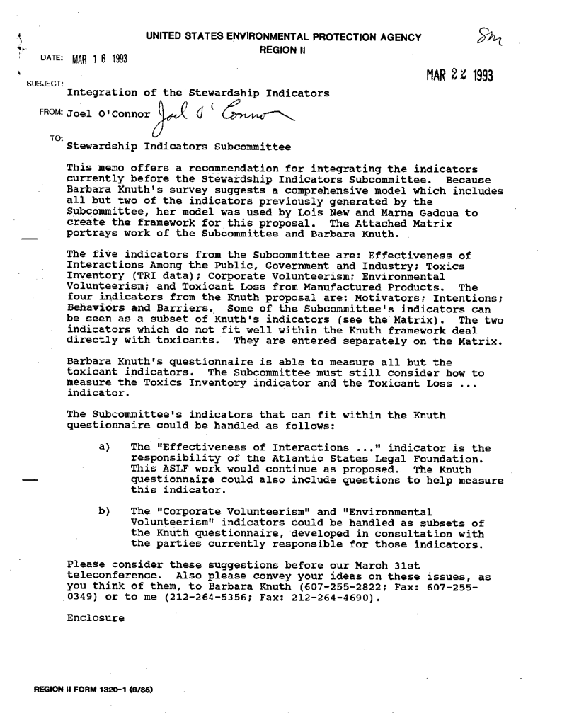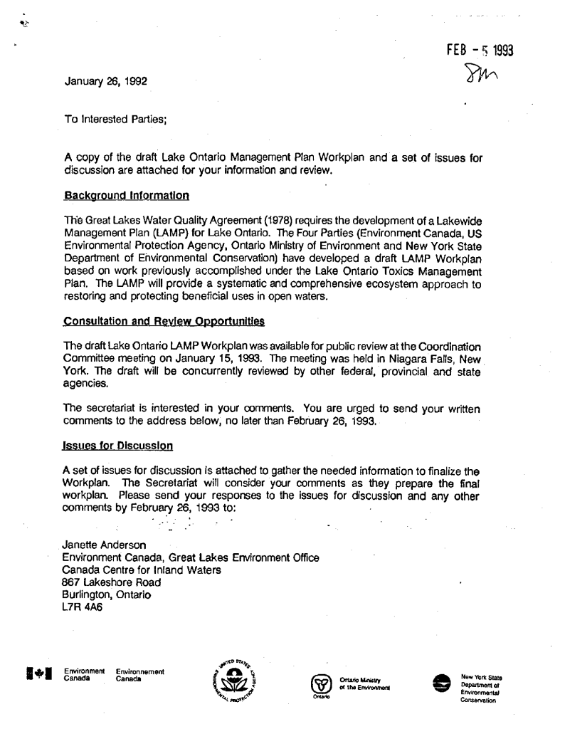 Stewardship indicators for the Lake Ontario project