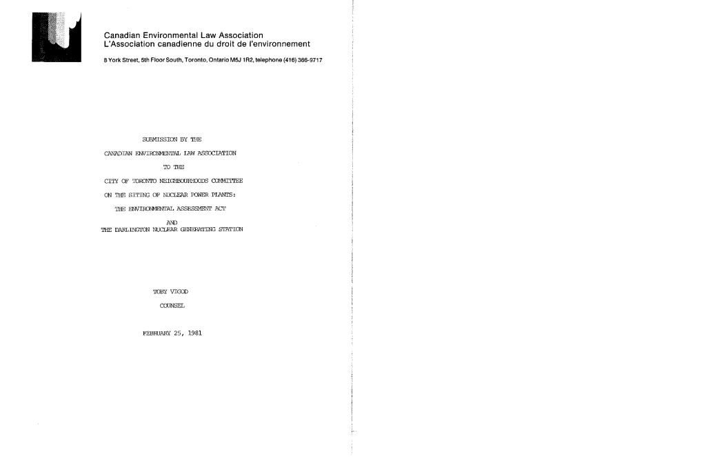 Submission by CELA to City of Toronto Neighbourhoods Committee etc.