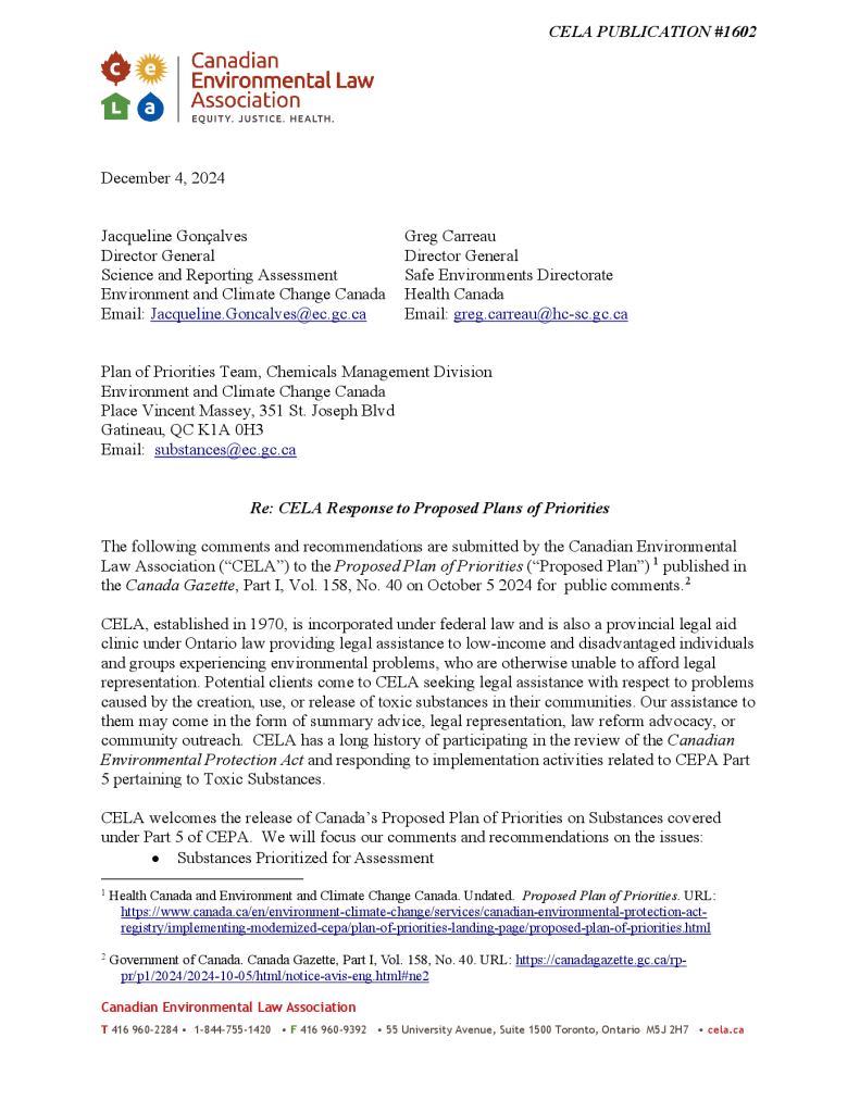 Canadian Environmental Protection Act (CEPA) carcinogens
