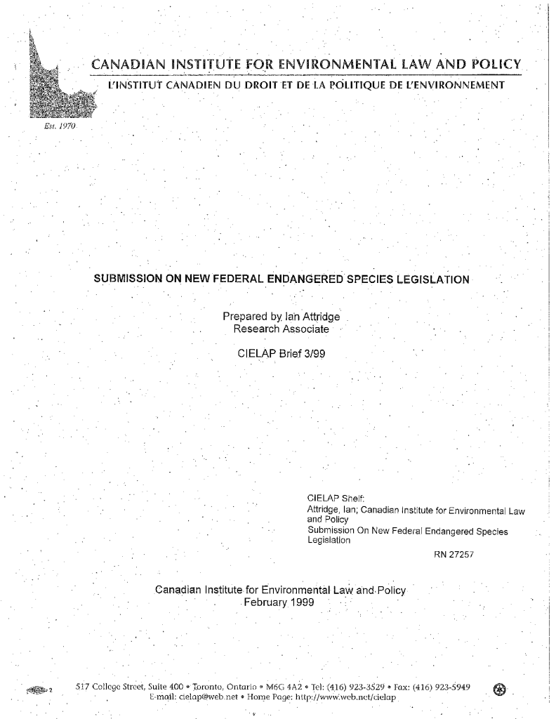 Fonds 2.0 - Canadian Institute for Environmental Law and Policy