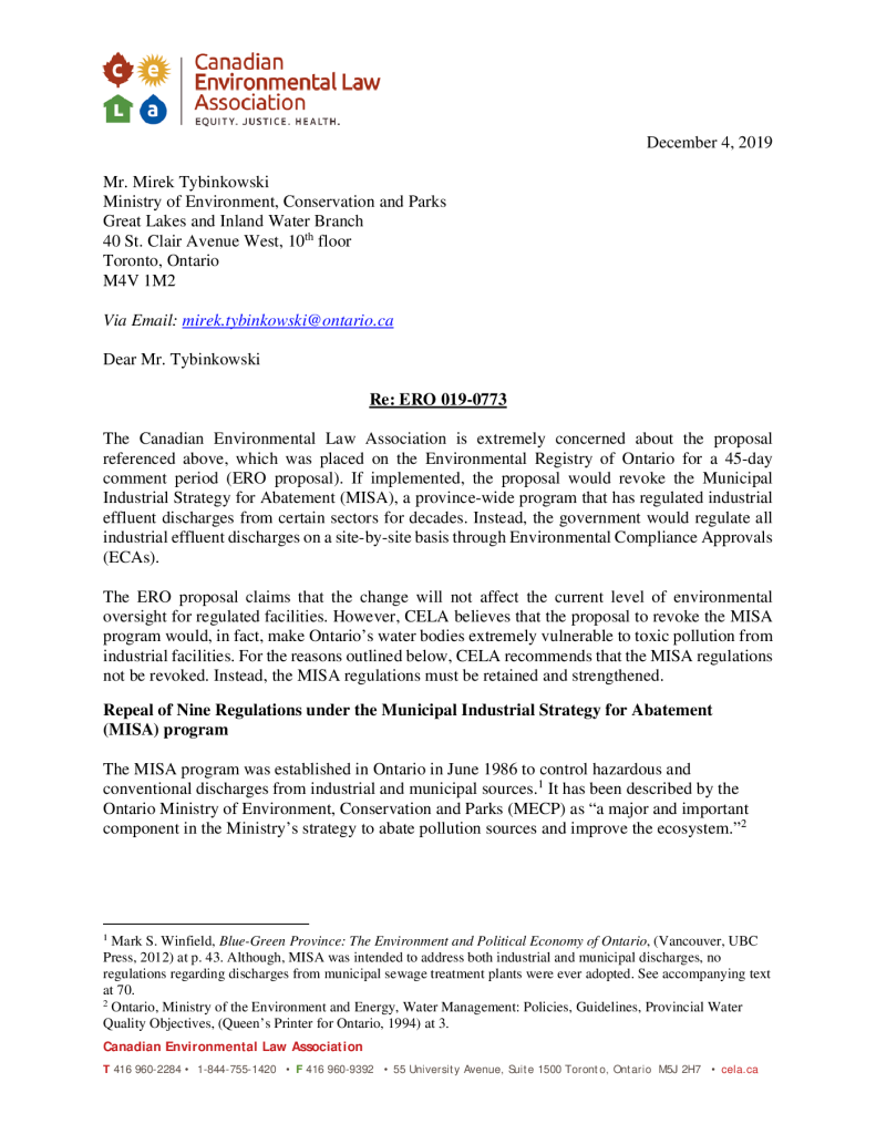 Fonds 1.0 - Canadian Environmental Law Association
