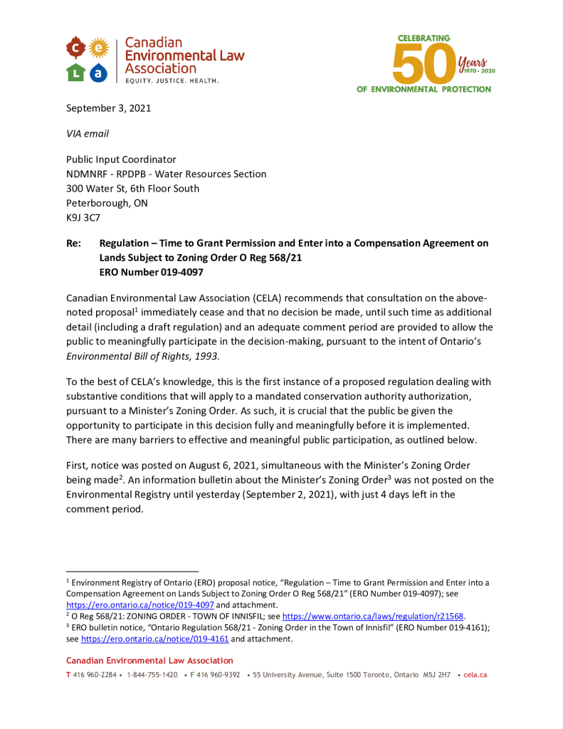 Submission on Proposed Regulation Requiring Conservation Authority to Authorize Development