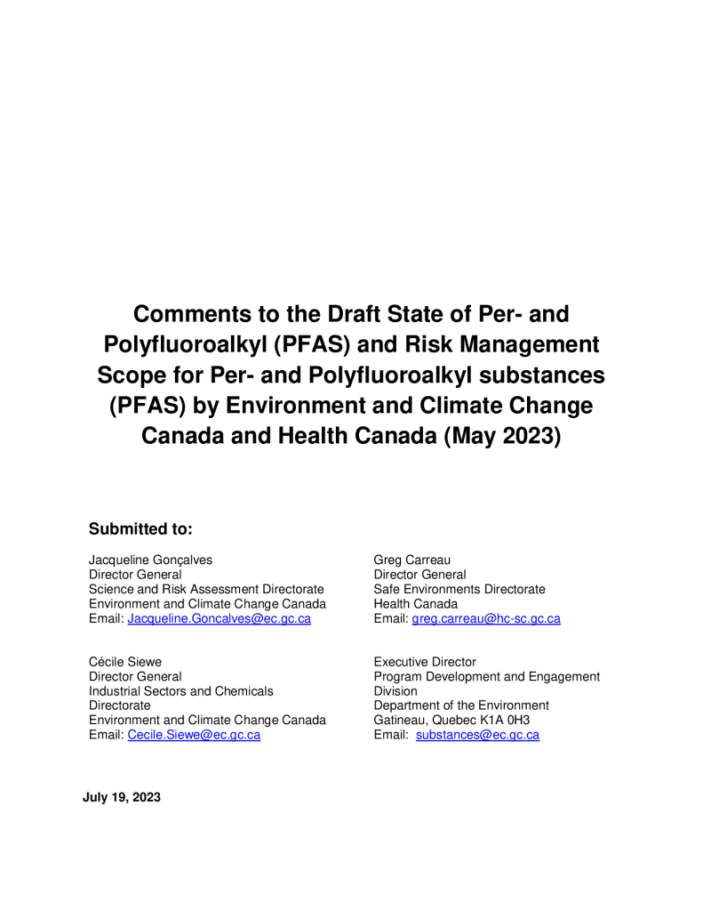 Submission: Response to the Draft State of PFAS Report and Risk Management Scope Document
