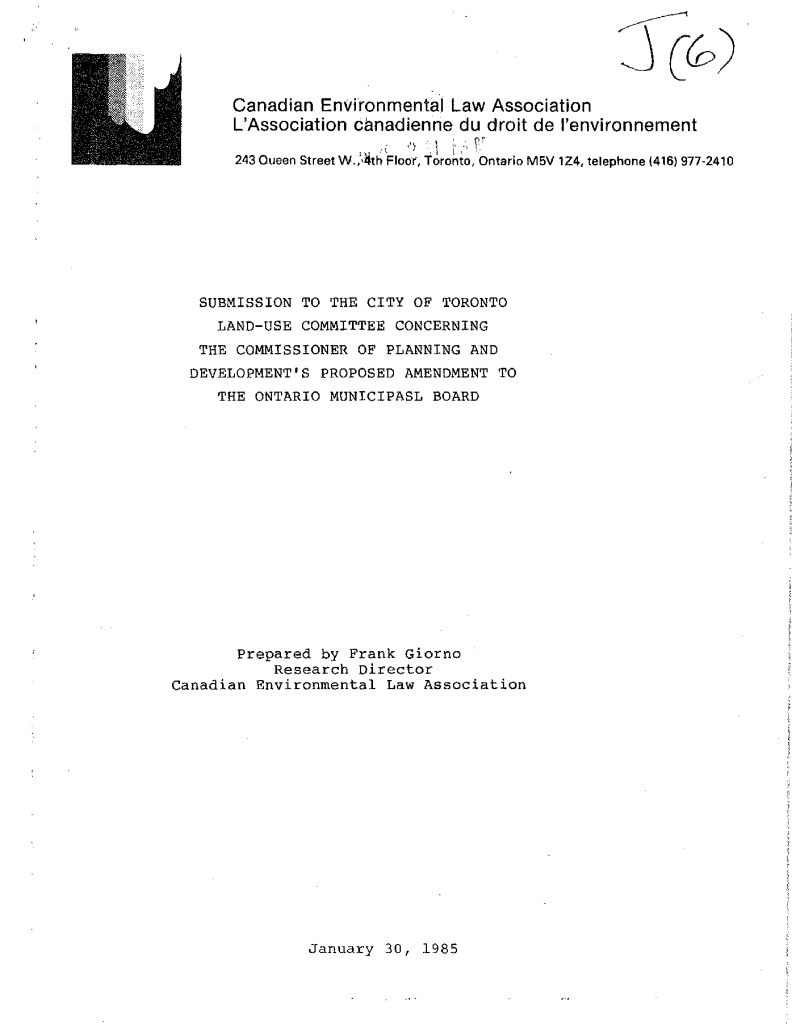 Submission to the City of Toronto Land Use Committee concerning the Commissioner Of Planning And Development’s proposed amendment to the Ontario Municipal Board