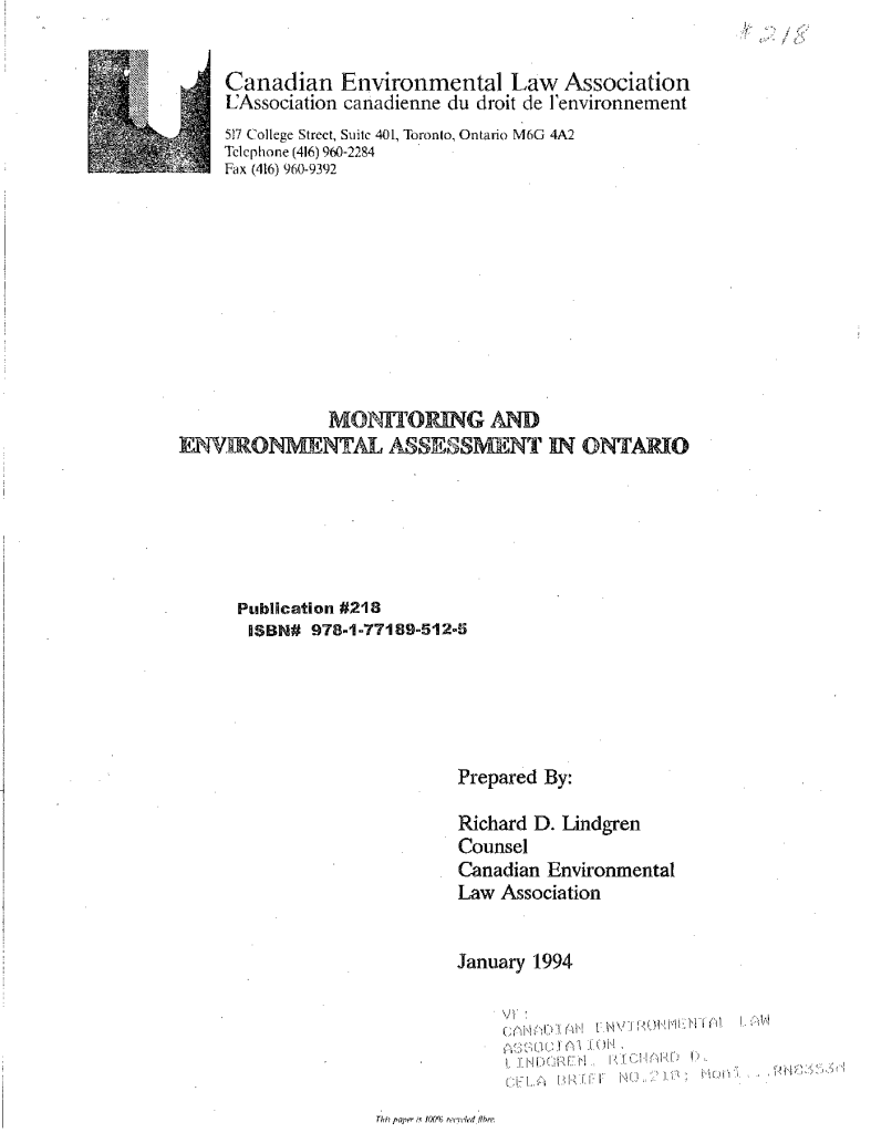 Submission to the commission on planning and development reform in Ontario: Comments in response to the Commission’s goals as set out in the April issue of New Planning News