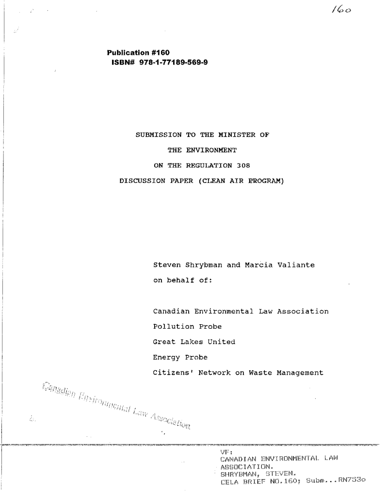 Submission to the Minister of the Environment on the regulation 308 discussion paper (clean air program)