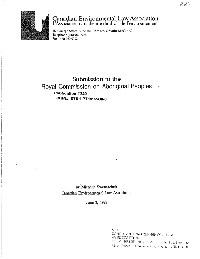 Submission to the Royal Commission on Aboriginal Peoples