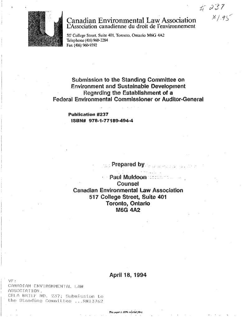 File 1.0 - CELA briefs and responses to government consultations environmental justice