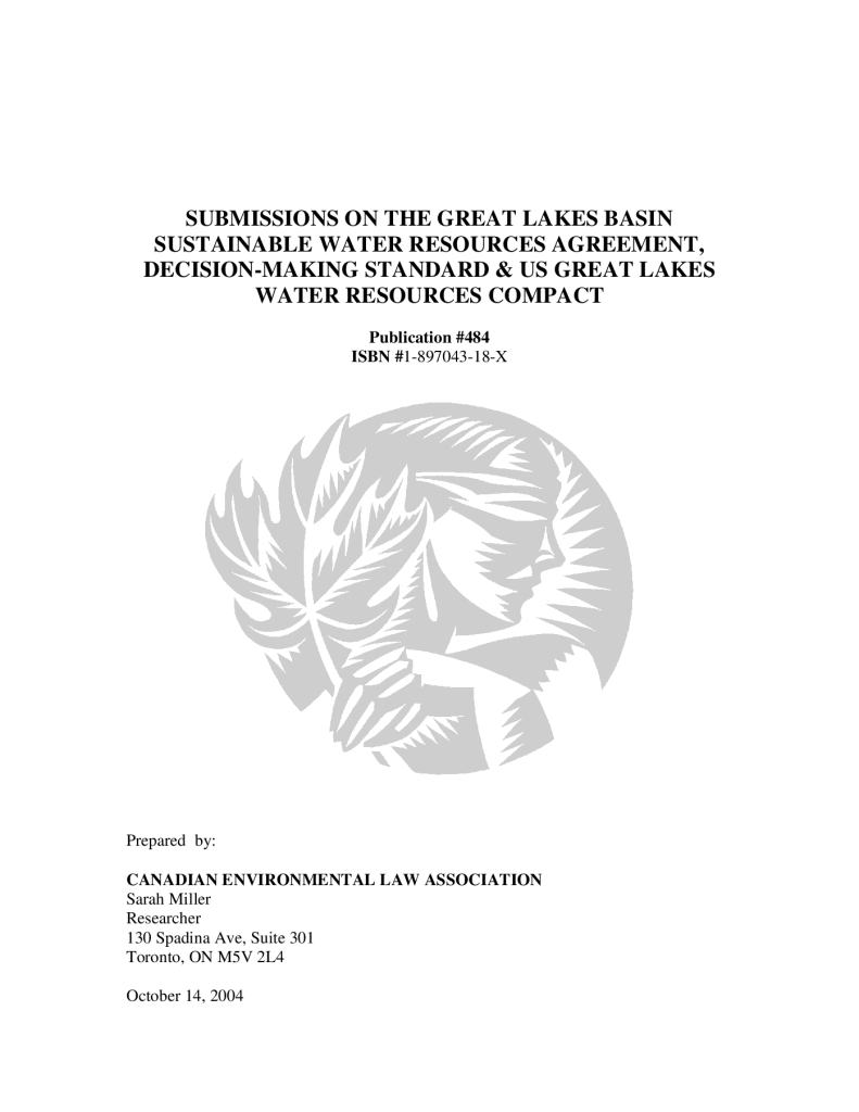 Submissions on the Great Lakes Basin Sustainable Water Resources Agreement, Decision-making Standard and US Great Lakes Water Resources Compact