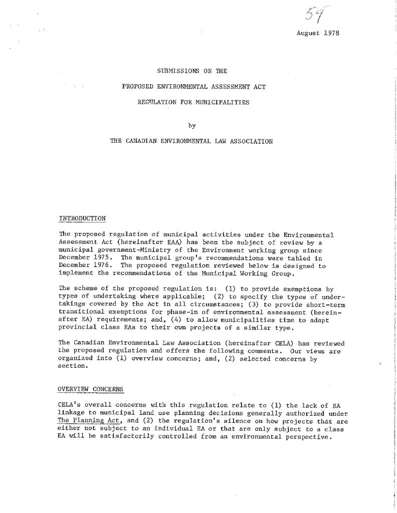 Submissions on the proposed Environmental Assessment Act Regulation For Municipalities