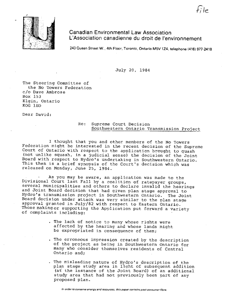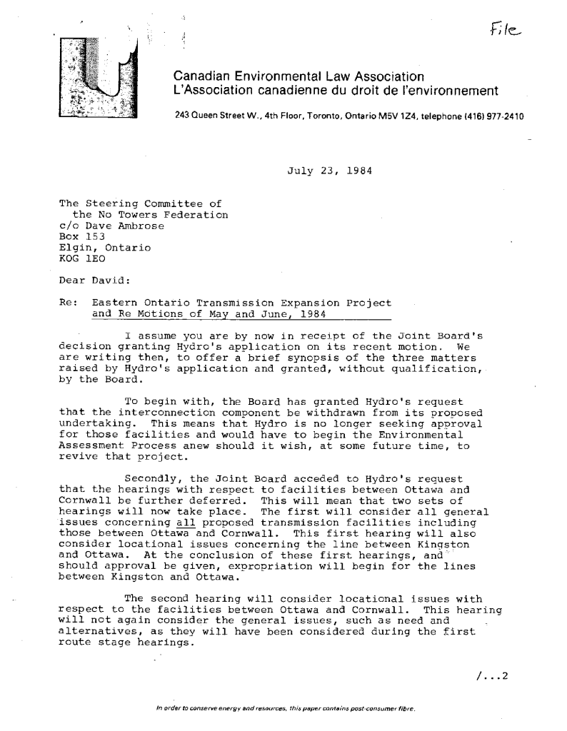 File 1.0 - Ontario Hydro East Transmission Expansion