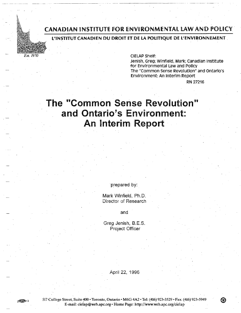 Fonds 2.0 - Canadian Institute for Environmental Law and Policy