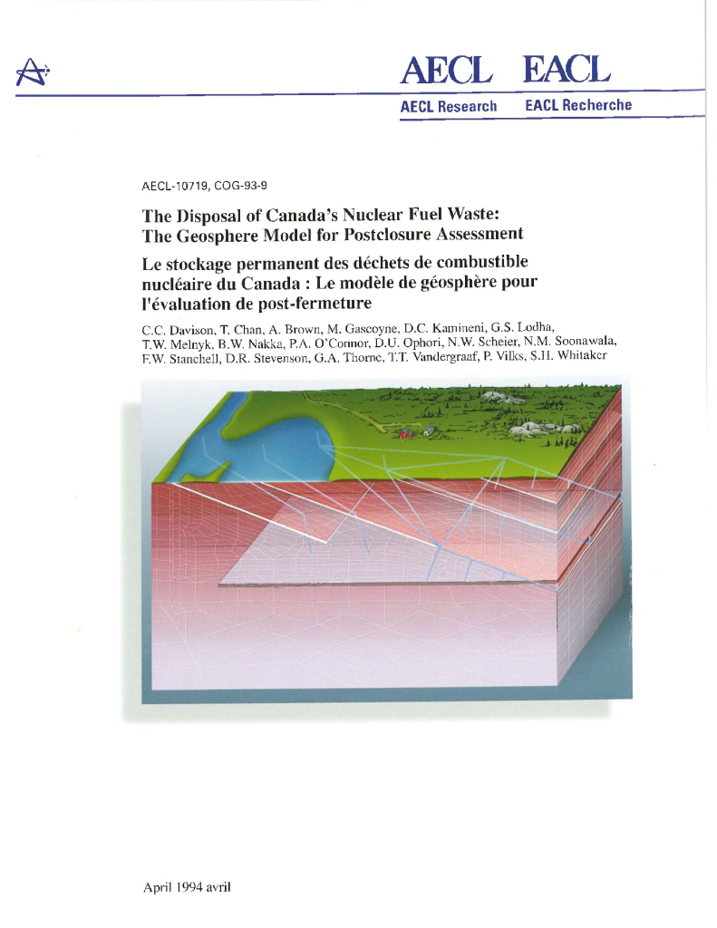 The disposal of Canada’s nuclear fuel waste : the geosphere model for post-closure assessment