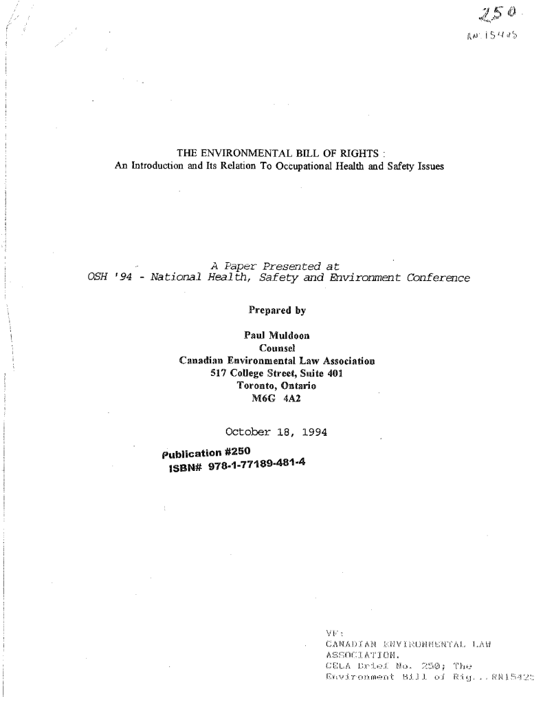 The Environmental Bill of Rights: an introduction and its relation to occupational health and safety issues