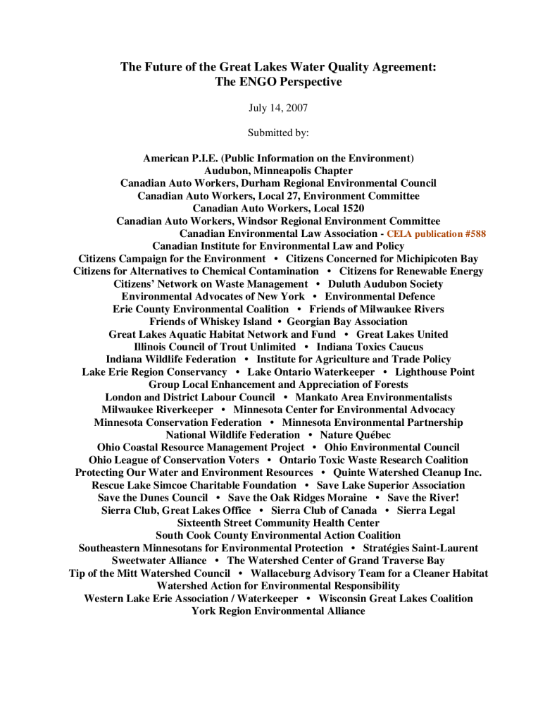 The future of the Great Lakes Water Quality Agreement: The ENGO perspective