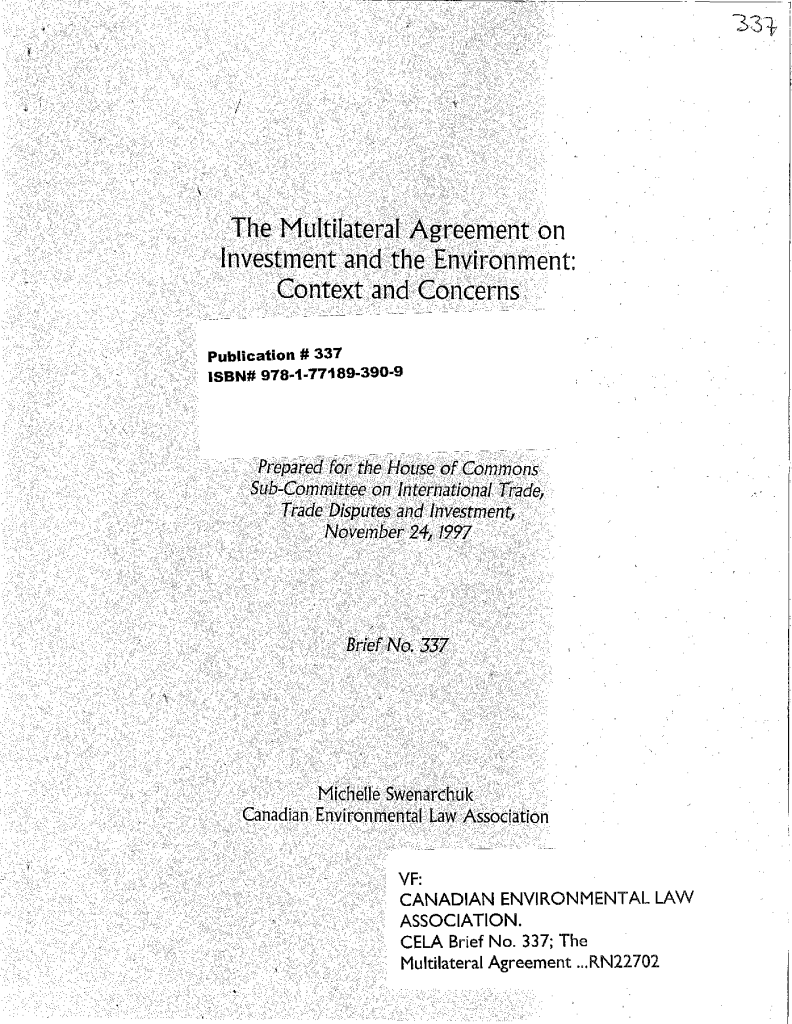 File 1.0 - CELA briefs and responses to government consultations trade and the environment