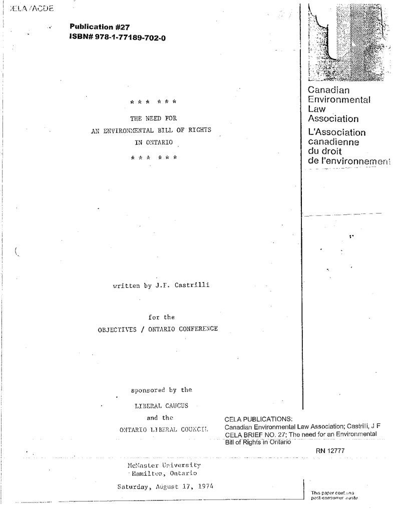 File 1.0 - CELA briefs and responses to government consultations environmental justice