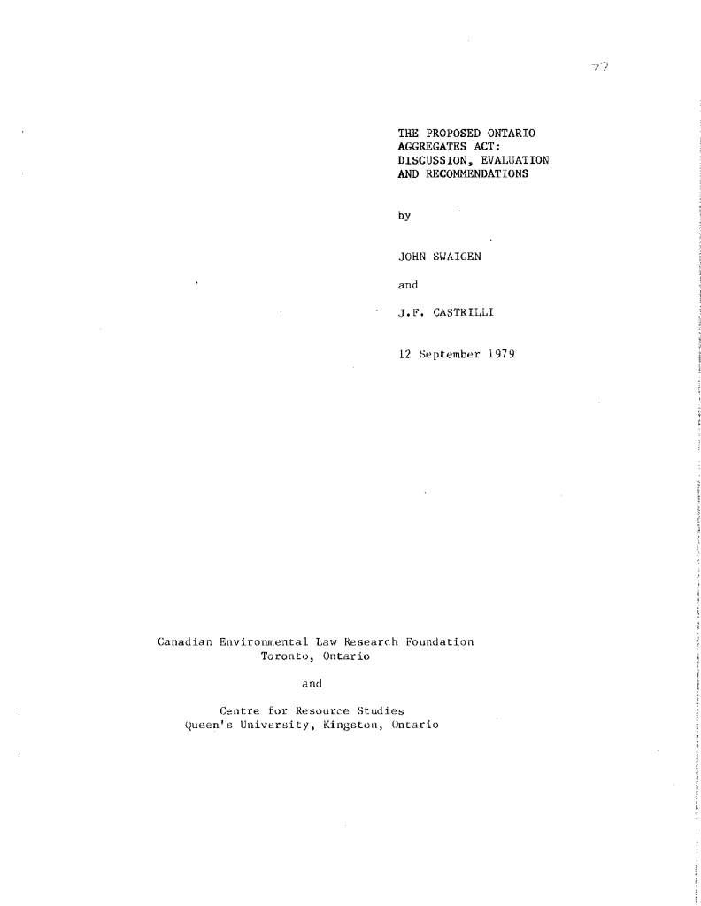The proposed Ontario Aggregates Act: discussions, evaluation and recommendations
