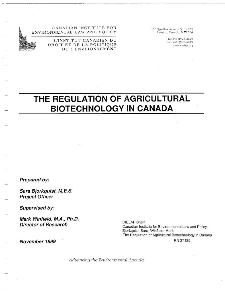 Fonds 2.0 - Canadian Institute for Environmental Law and Policy