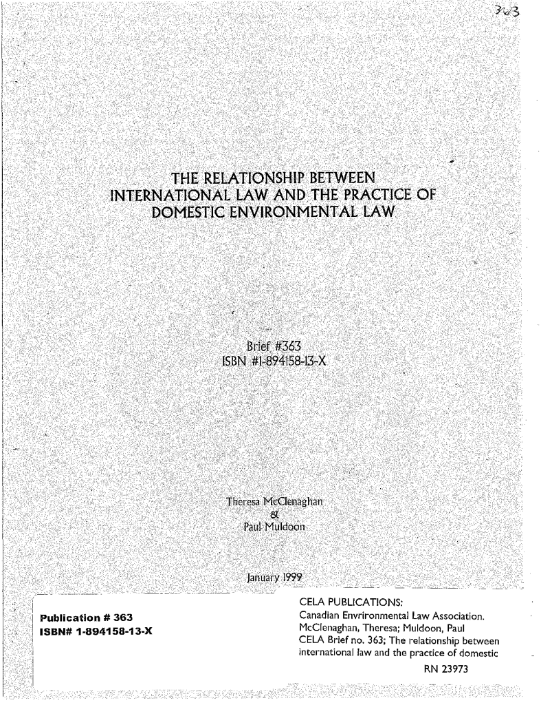 The relationship between international law and the practice of domestic environmental law