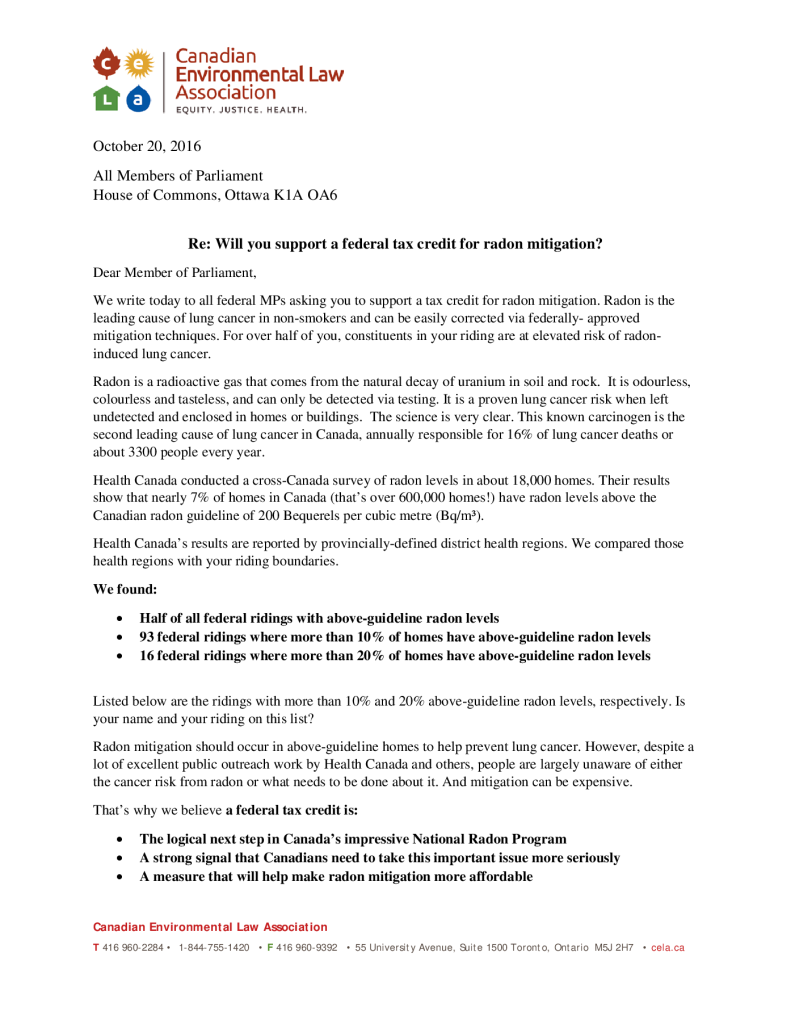 To all Federal MPs – Will you support a federal tax credit for radon mitigation?