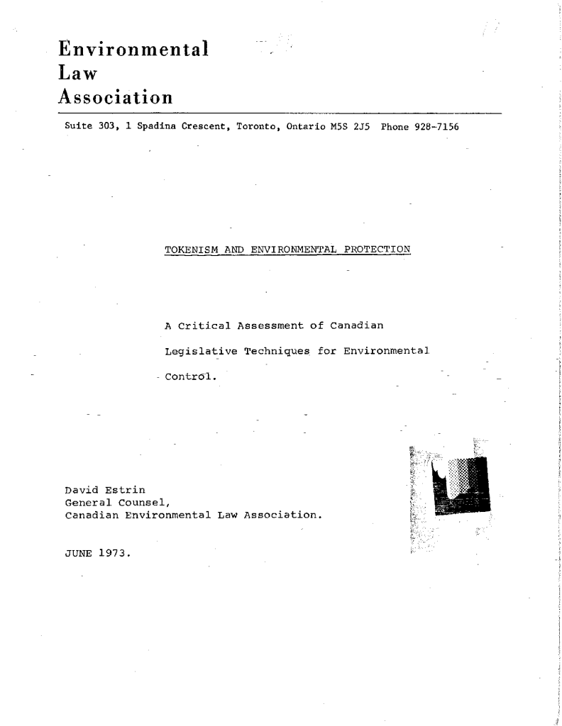 Tokenism and Environmental Protection – a critical assessment of Canadian Legislative Techniques for Environmental Impact Proc.