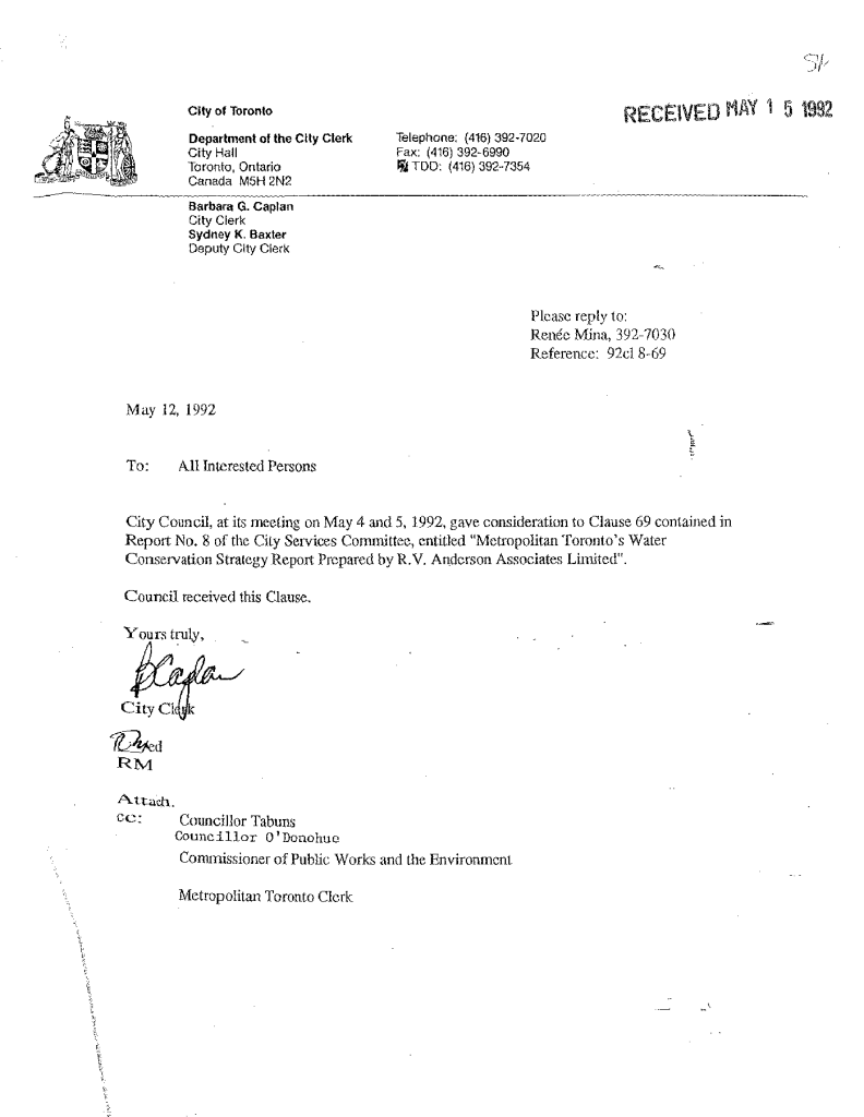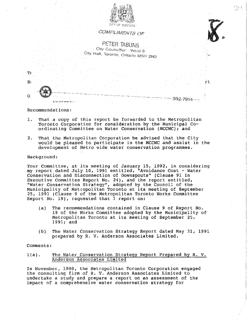 Toronto water services and conservation