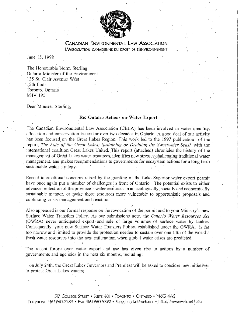Fonds 1.0 - Canadian Environmental Law Association
