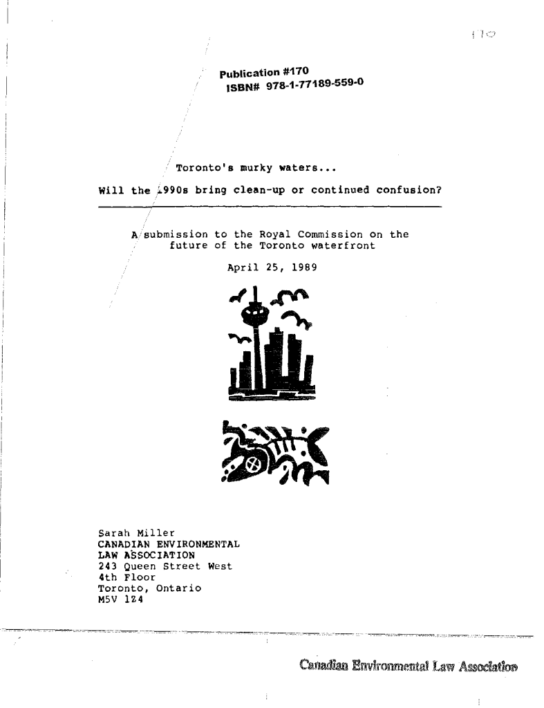Toronto’s murky waters … Will the 1990s bring clean-up or continued confusion? A submission to the Royal Commission on the future of the Toronto waterfront