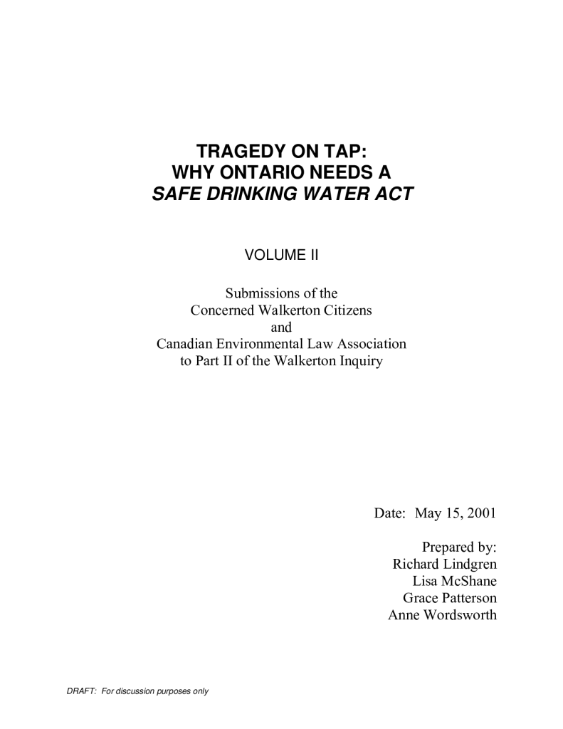 Tragedy on tap: Why Ontario needs a safe drinking water act, Volume II