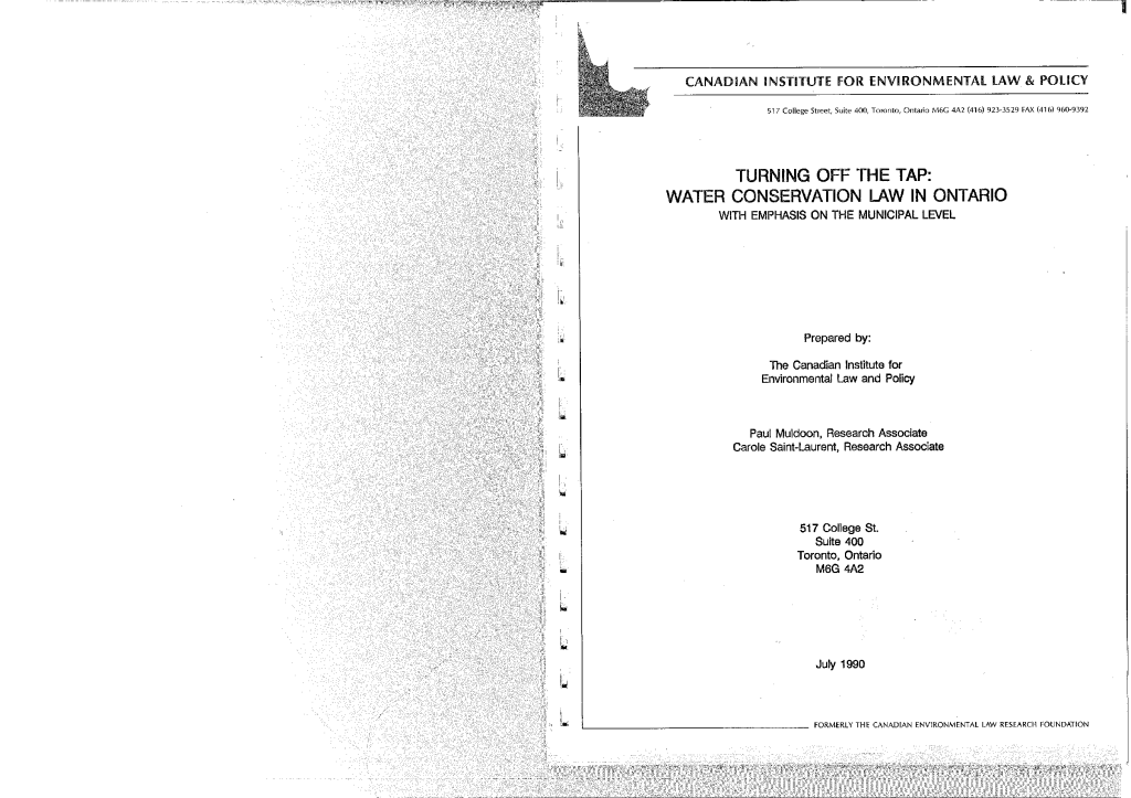 Turning off the tap: water conservation law in Ontario with emphasis on the municipal level