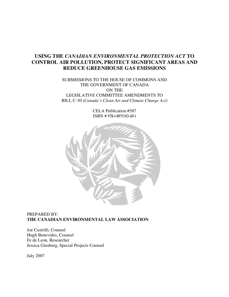 Using the Canadian Environmental Protection Act to control air pollution, protect significant areas and reduce greenhouse gas emissions