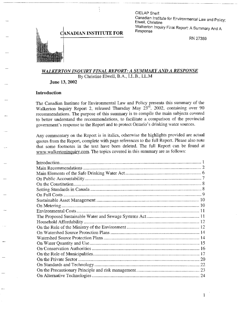 File 2.0 - CIELAP Water quality and quantity briefs and responses
