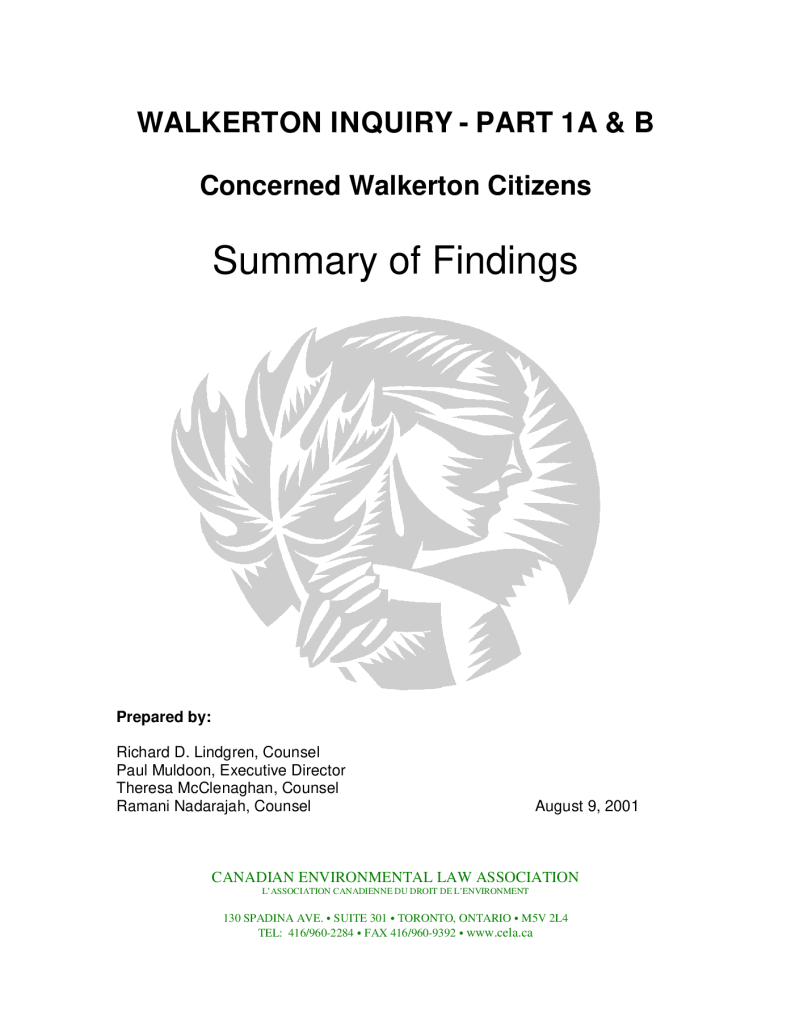 Walkerton Inquiry, Part 1A and B, Concerned Walkerton Citizens: Summary of Findings