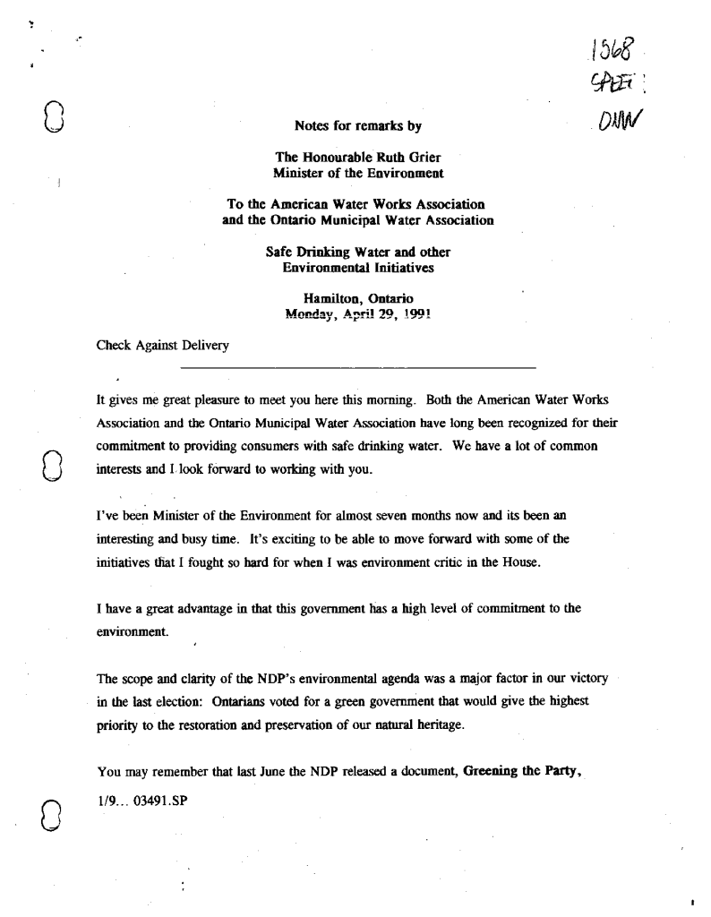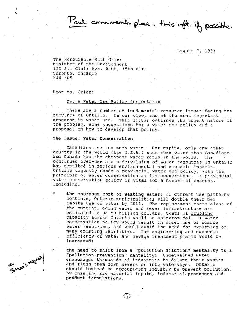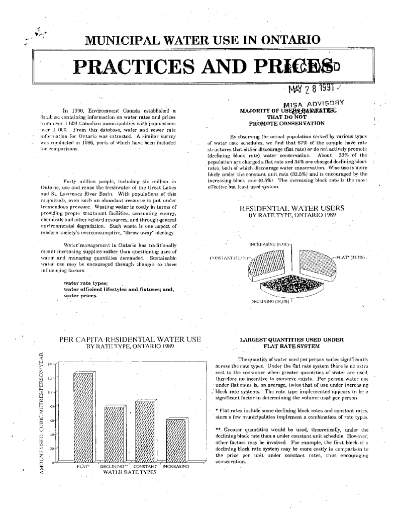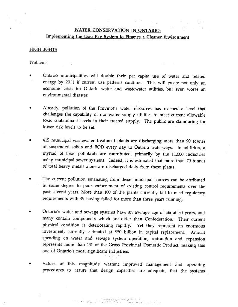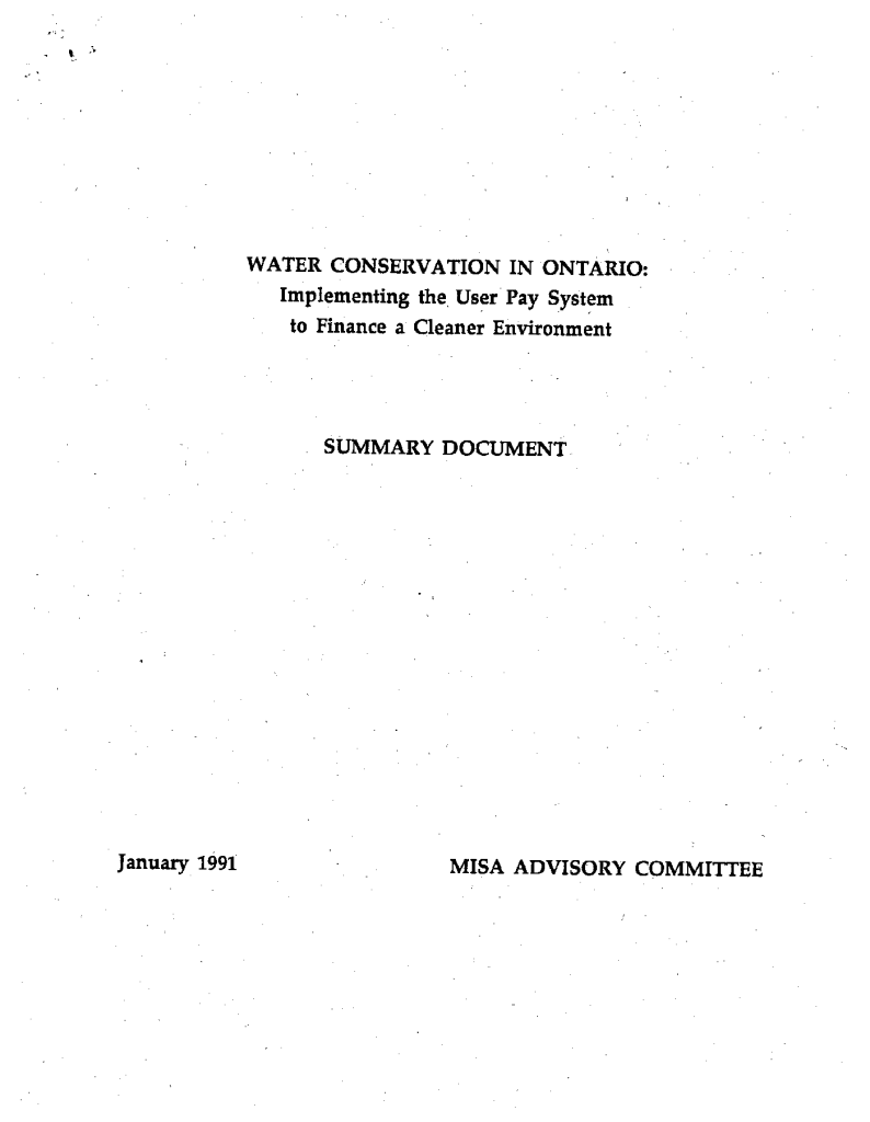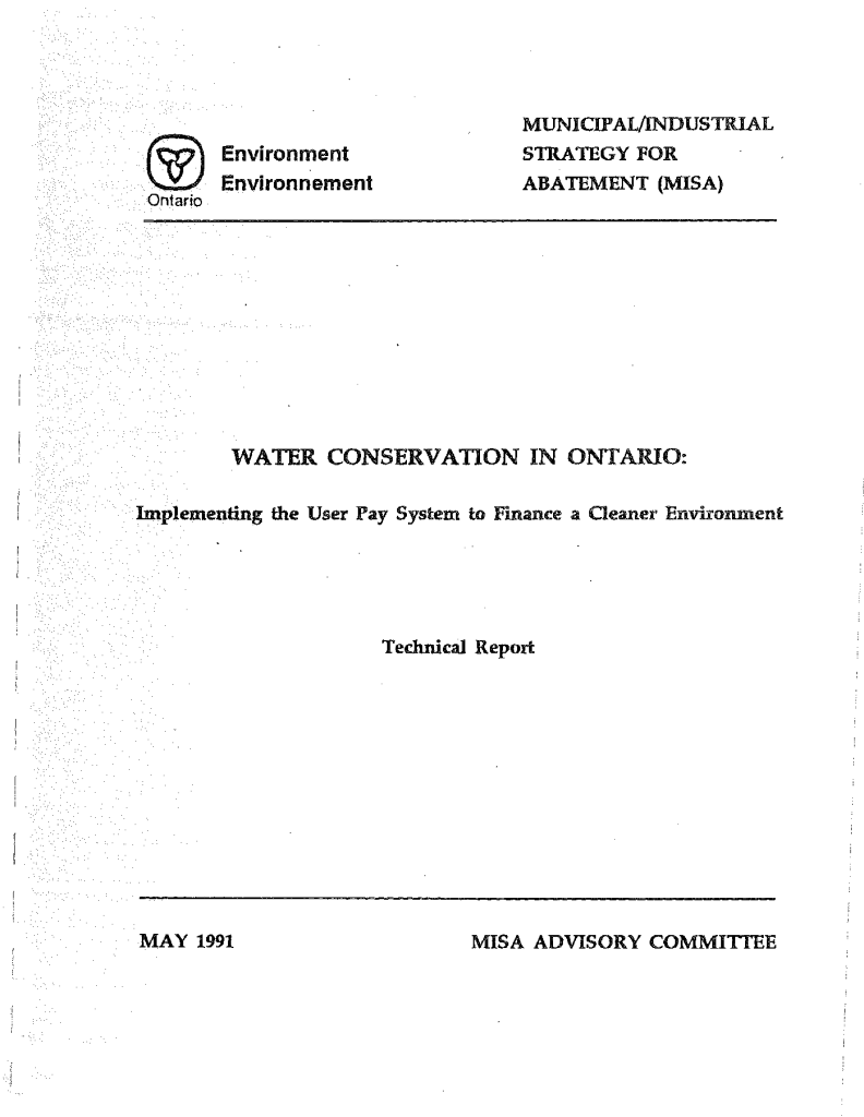 Water conservation in Ontario : Implementing the user pay system to finance a cleaner environment