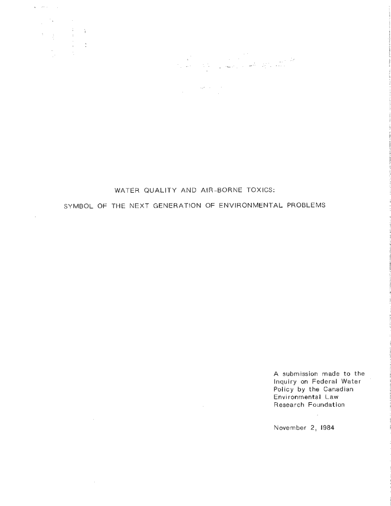 Water quality and airborne toxics: symbol of the next generation of environmental problems