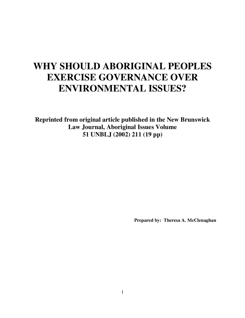 Why Should Aboriginal Peoples Exercise Governance Over Environmental Issues?
