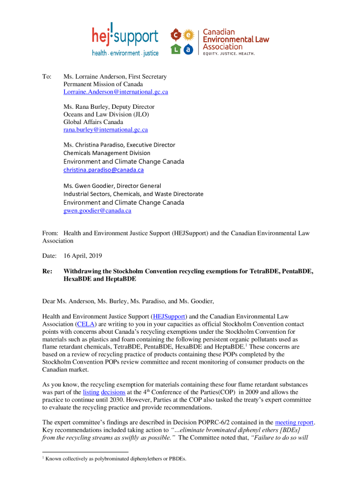 Withdrawing the Stockholm Convention recycling exemptions for TetraBDE, PentaBDE, HexaBDE and HeptaBDE